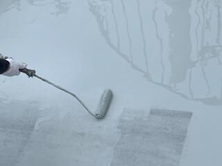 防水層を保護するためにトップコートを塗布します。特にウレタン防水の場合、トップコートが必要です。